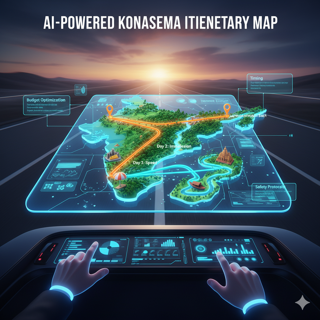 నేను అంచనాల స్థానంలో అల్గోరిథంలను, స్థానిక జ్ఞానం స్థానంలో రియల్-టైమ్ డేటాను, మరియు మానవ అలసట స్థానంలో పరిపూర్ణ డిజిటల్ అమలును ఉపయోగించాను. ₹27,558 బడ్జెట్ను గౌరవించాము, చారిత్రక మరియు మతపరమైన ప్రదేశాలను విజయవంతంగా జయించాము, మరియు కోనసీమ డెల్టా దాని అద్భుతమైన అందాన్ని సమయానికి అందించింది.
